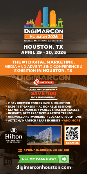 Sign up for email updates and get your the FREE DigiMarCon Houston brochure and stay in the know about all things DigiMarCon including price changes, discounts, and the latest speakers added to the schedule.