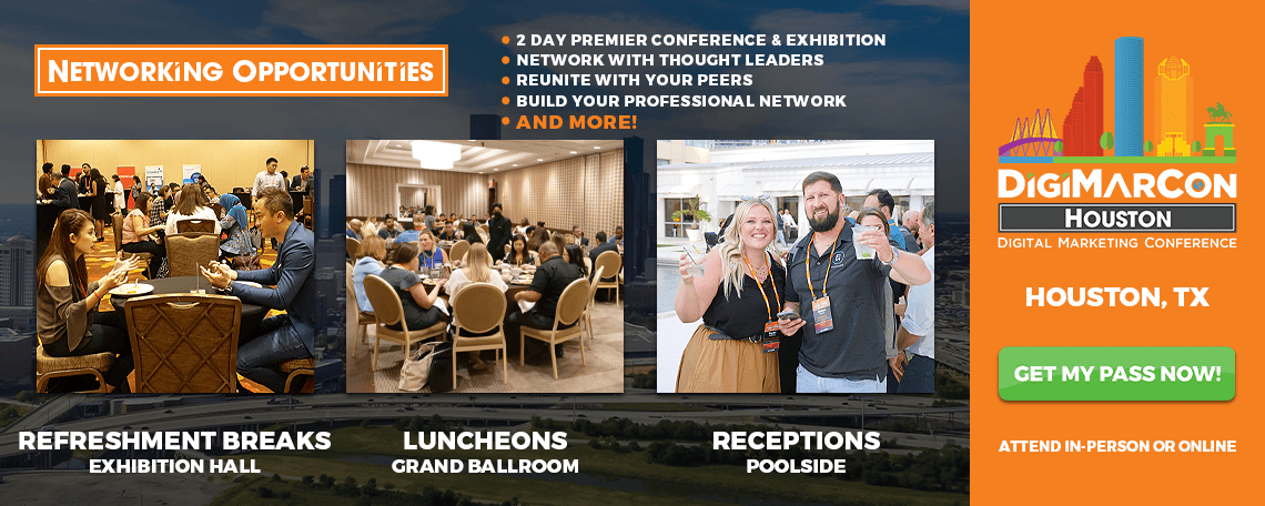 DigiMarCon Houston 2026 provides unparalleled opportunities to connect, collaborate, and grow professionally. Whether you’re networking with fellow marketers over drinks at our Receptions or gaining insights from industry thought leaders during structured Networking Breaks, every moment is designed to expand your professional network, spark meaningful relationships, and open doors to new career and business opportunities. Throughout the conference, you’ll have access to diverse networking settings, ensuring that you can meet, engage, and collaborate with peers, industry experts, and potential partners at every turn.